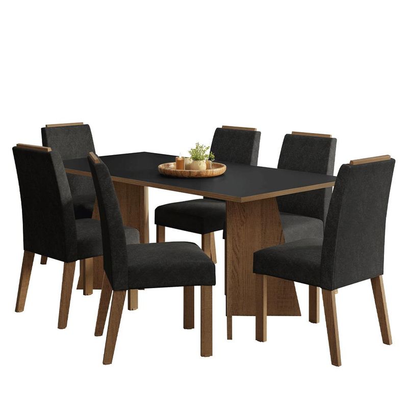 Casa e DecoraçãoMóveisConjunto de mesas e cadeirasConjunto Sala de Jantar Tampo de Madeira 6 Cadeiras Rustic/Preto/Oxford Minsk Madesa