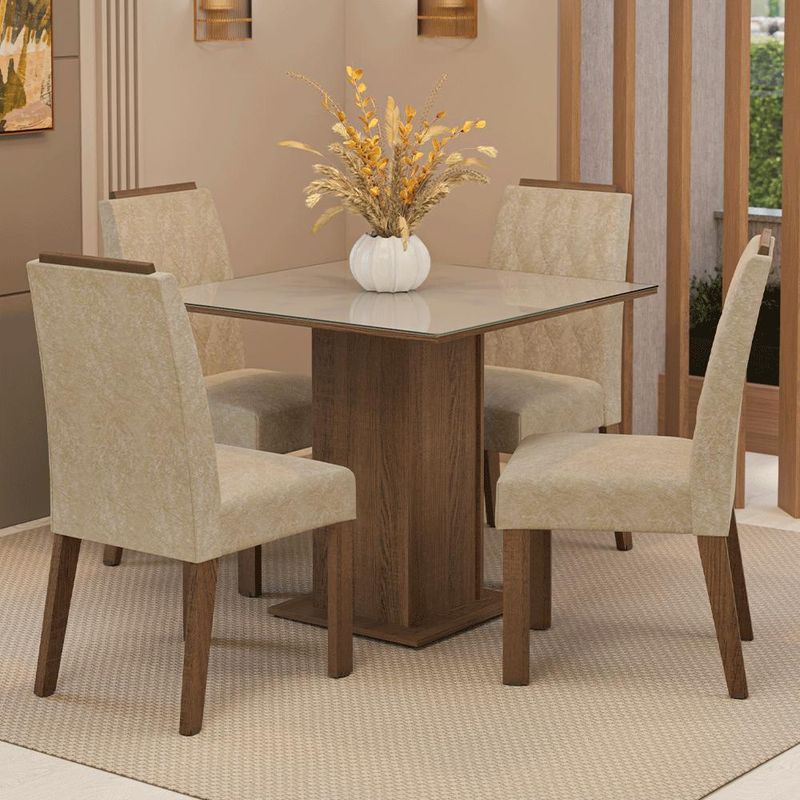 Casa e DecoraçãoMóveisConjunto de mesas e cadeirasConjunto Sala de Jantar Tampo de Vidro 4 Cadeiras Rustic/Crema/Imperial Capri Madesa