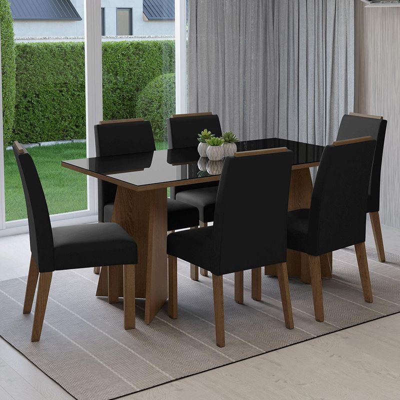 Conjunto Sala de Jantar Tampo de Vidro 6 Cadeiras Rustic/Preto/Oxford Madrid Madesa REF: 7891760974549