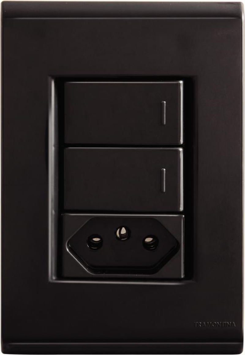 Conjunto Tramontina 4x2 com 2 Interruptores Simples 10 A 250 V e 1 Tomada 2P+T 10 A 250 V Liz Grafite REF: 7891435970692