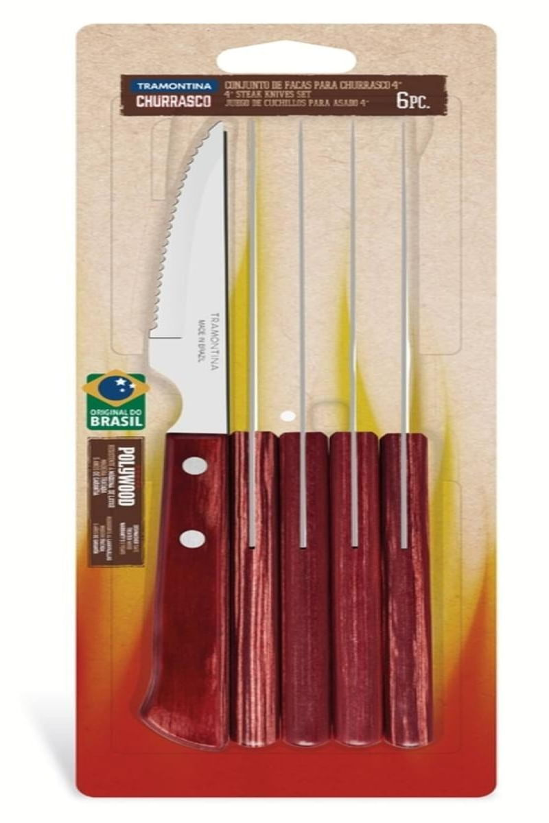 Casa e DecoraçãoUtilidades DomésticasUtensílios de ChurrascoConjunto Tramontina 6 Peças Facas Aço Inox Cabo Vermelho