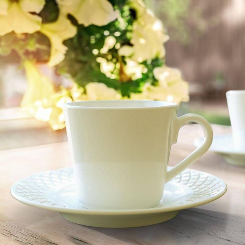 Conjunto Xícara e Pires Café 70ml Porcelana Decorada Tramont REF: 7908538106702