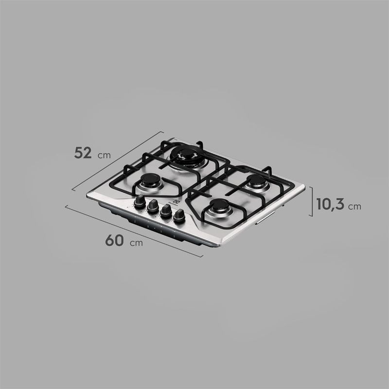 Cooktop 4 Bocas a Gás Electrolux Inox Experience Multi Chama e Grade Ferro Fundido (KE4XC) REF: 7909569484692