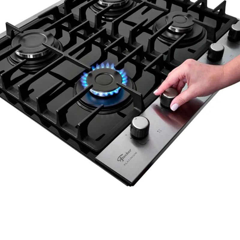 Cooktop a Gás 4 Bocas Bivolt Platinium Mesa de Vidro - Fischer REF: 728146_Sicredi