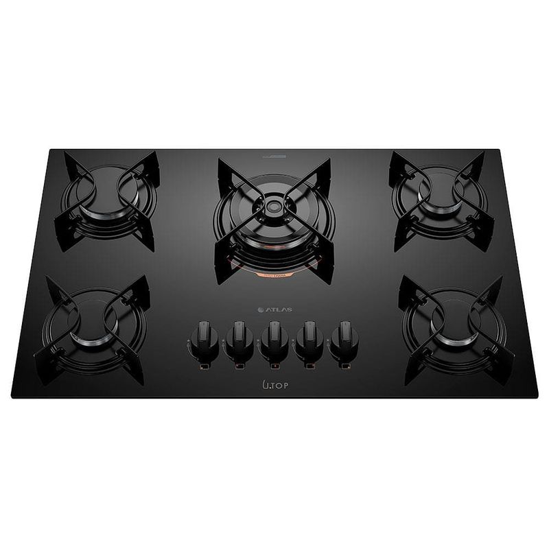 Cooktop a Gás Atlas U Top 5 Bocas Tripla Chama Mesa de Vidro Preto Bivolt REF: 7897180509408