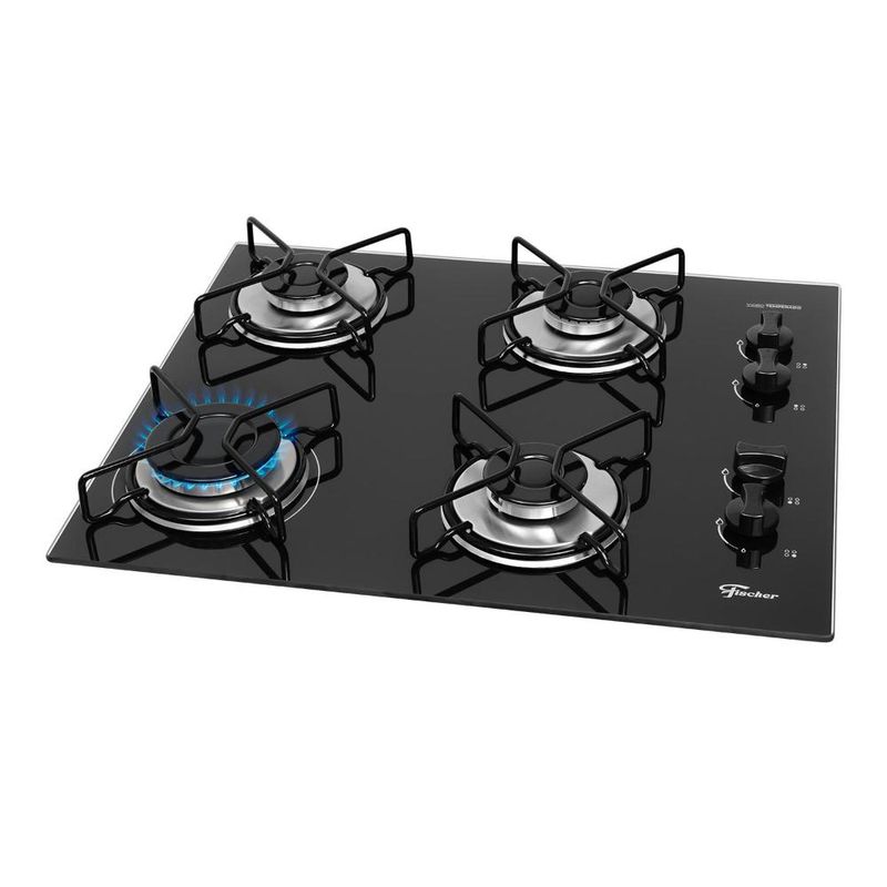 Cooktop a Gás Fischer 4 Bocas Fit Line Trempe Esmaltada Aramado Bivolt 36350 REF: 728872_Sicredi