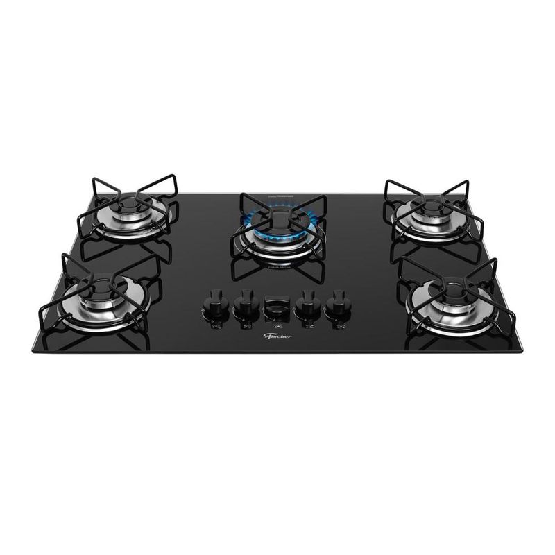 Cooktop a Gás Fischer 5 Bocas Fit Line Trempe Esmaltada Aramado 36360 REF: 728871_Sicredi
