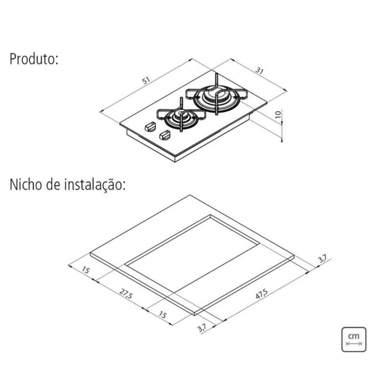 EletrodomésticosCooktopCooktop a Gás Vidro Temperado Tramontina Dominó 2GG 30 Preto 2 Bocas Superautomático Bivolt