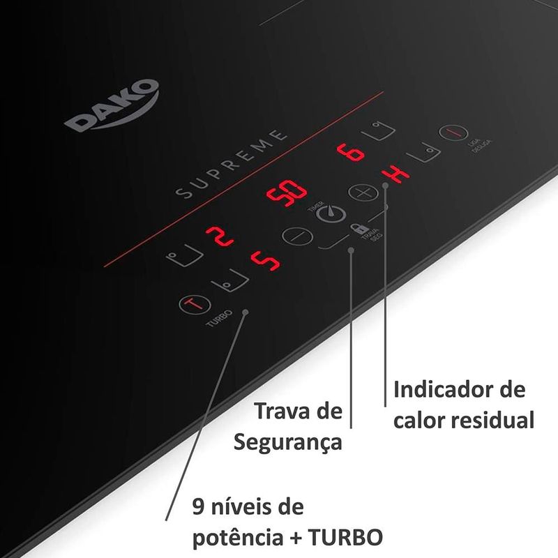 Cooktop de Indução Dako Supreme 4 Bocas Trava de Segurança Preto 220V REF: 7897180509538