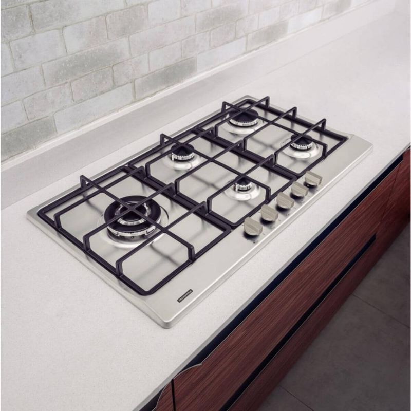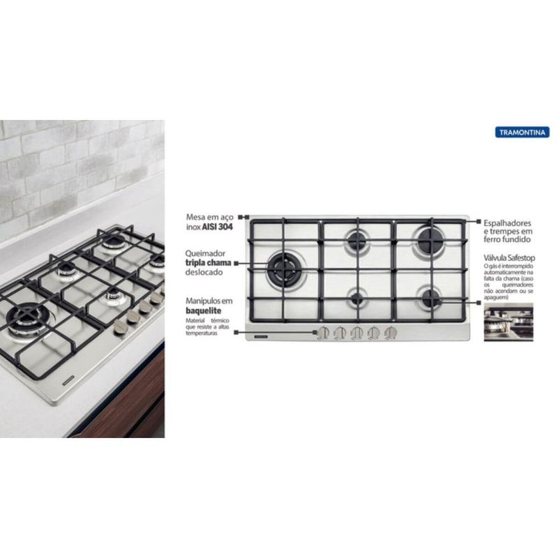 Cooktop Gás 5 Bocas Tramontina Penta Plus Safestop Aço Inox Bivolt Superautomático REF: 7894693747174