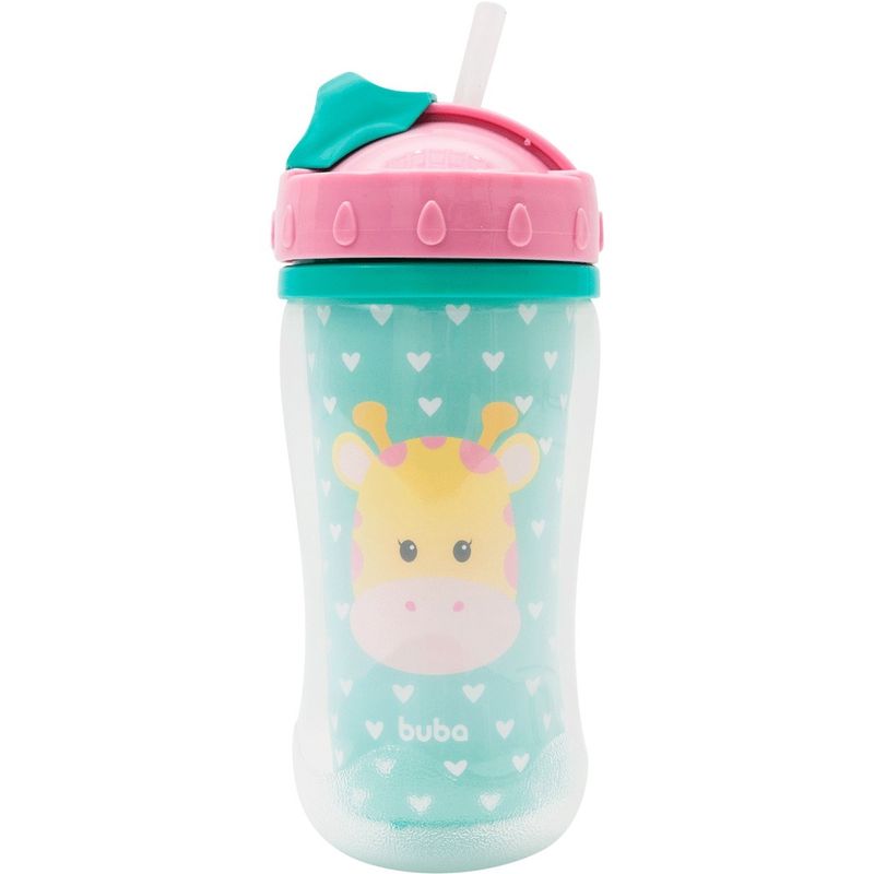 Beleza e SaúdeInfantil e GestanteInfantilCopo Buba Parede Dupla Com Canudo Silicone Animal Fun Girafa 320ml Tampa Antivazamento