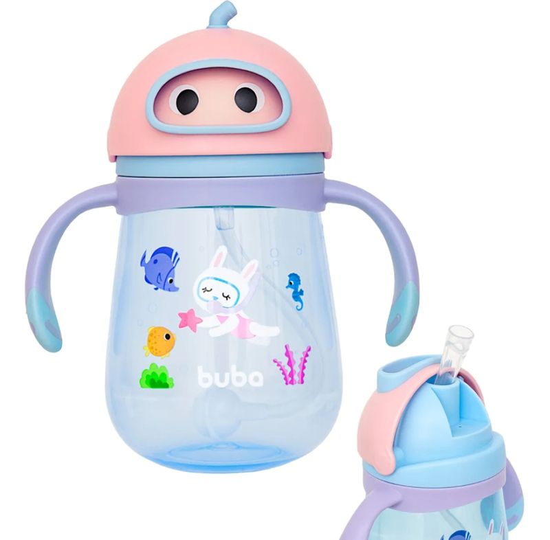 Copo de Treinamento Buba com Canudo e Alça Removível Rosa 300ml REF: 7908103769394