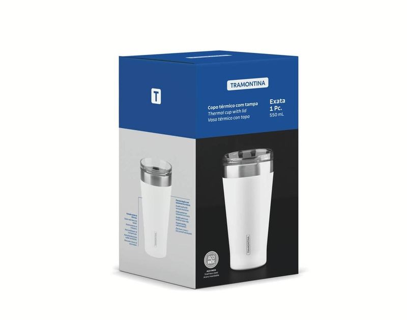 Copo Térmico Branco em Aço Inox Tramontina Exata com Tampa 550ml REF: 7891116176863