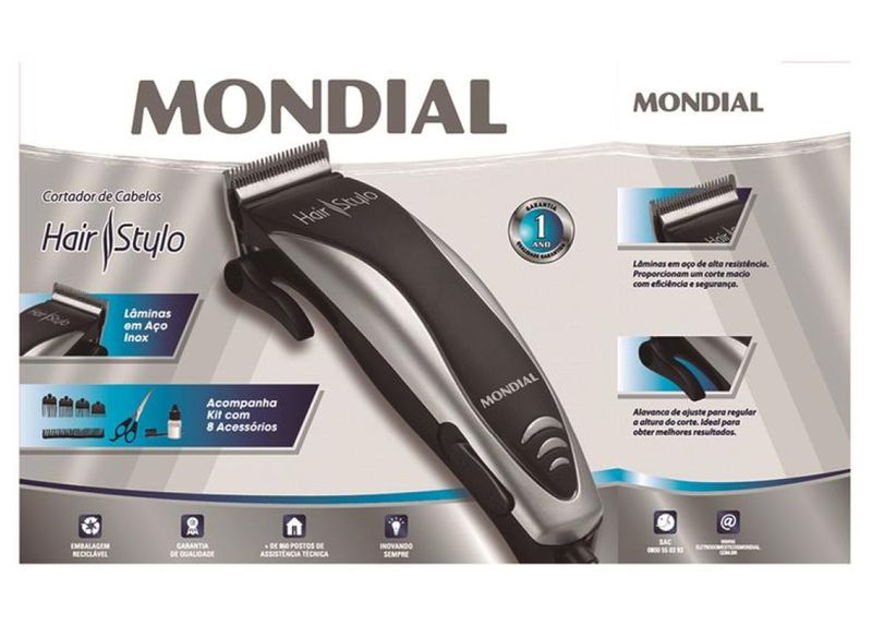 Cortador De Cabelos Hair Stylo Mondial Preto/prata Cr-02 Preto REF: 779242_Sicredi