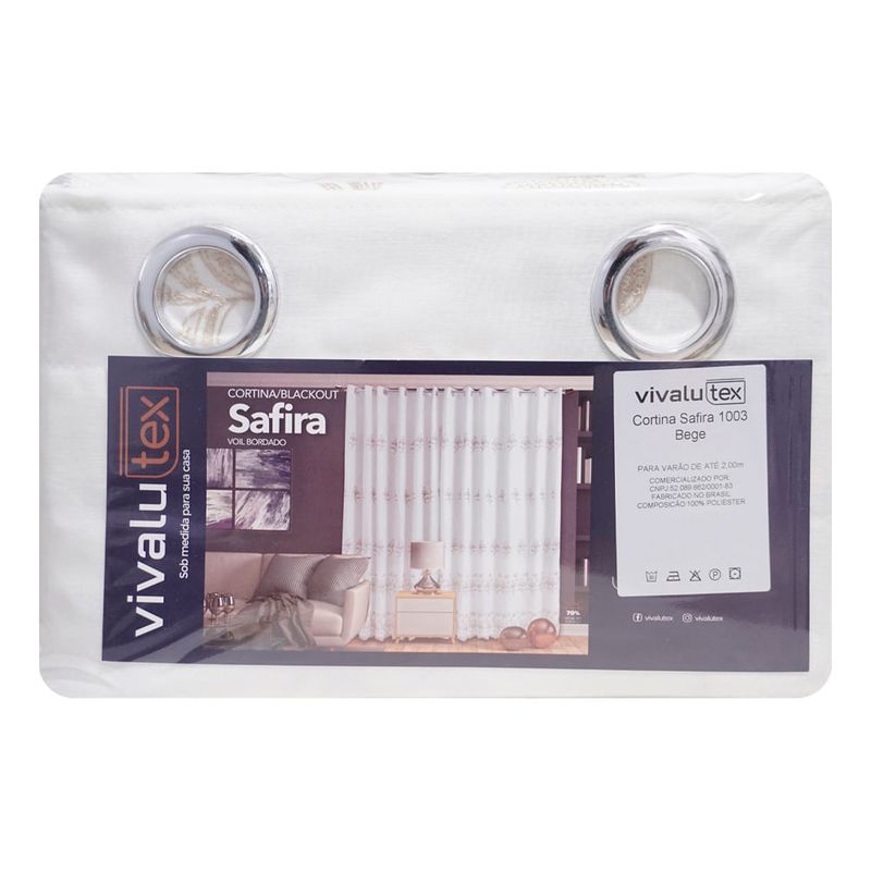 Casa e DecoraçãoDecoraçãoCortinaCortina Bordada com Forro e Voil 3.00 x 2.30 Mts Vivalutex Safira Bege 1003