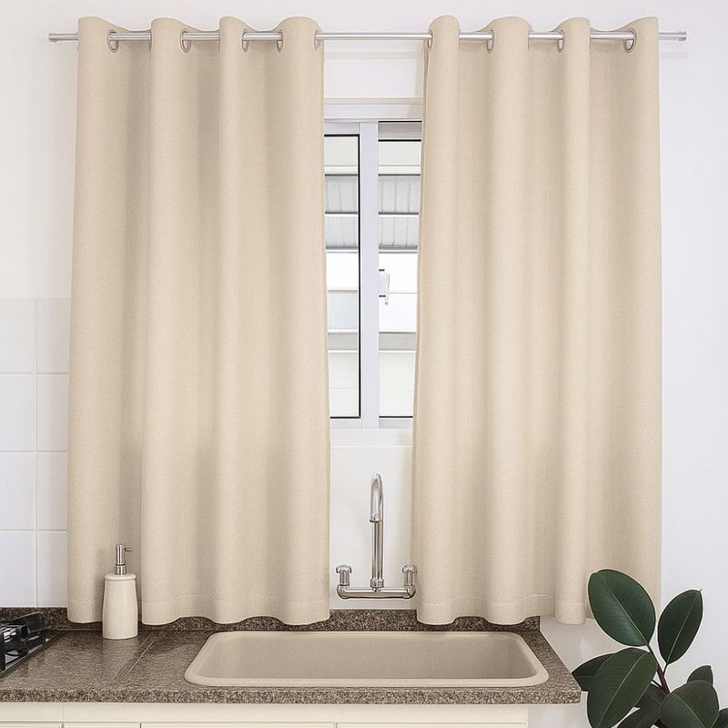 Cortina para Cozinha Voil e Forro 280x130cm Luna Bege REF: 7900154031918