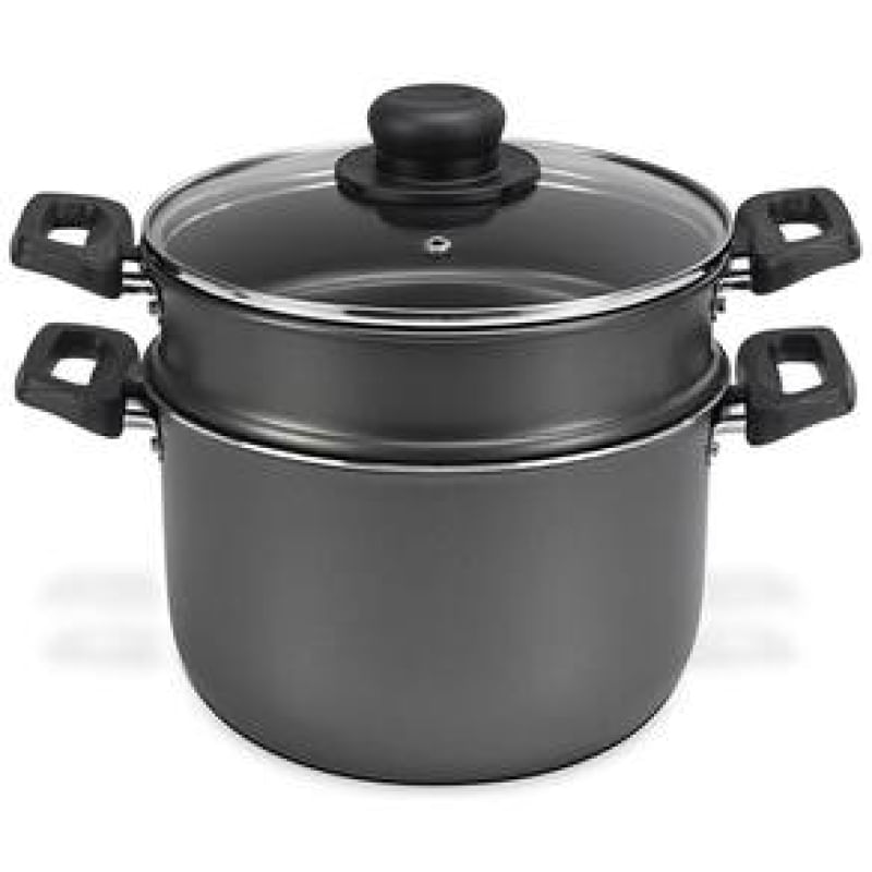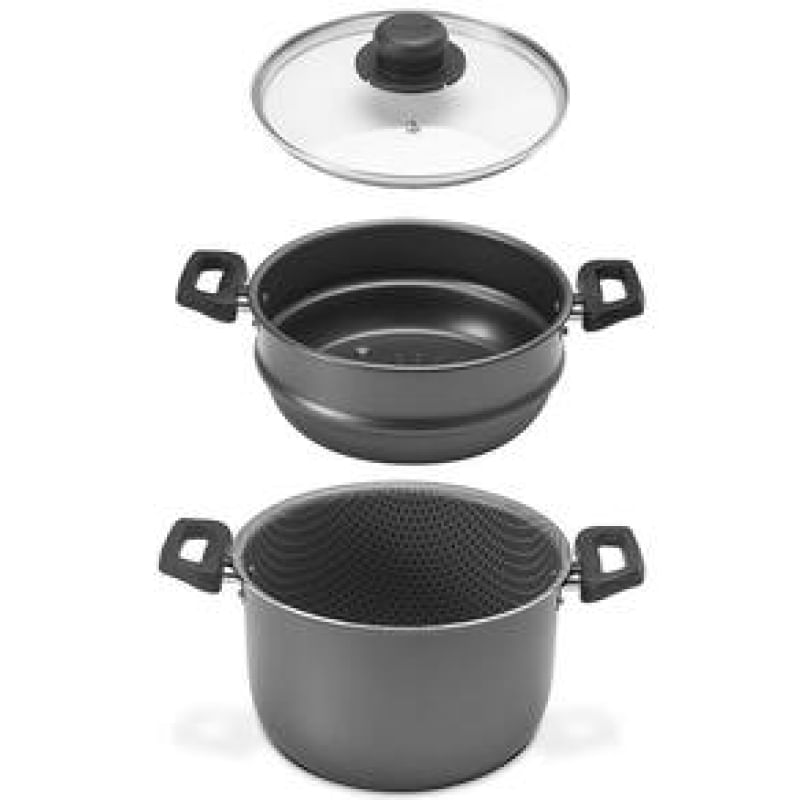 Cozi Vapor/ Cuscuzeira Multiflon em Alumínio com Revestimento Antiaderente 7 Camadas, Tampa de Vidro Temperado e Alças em Baquelite 20 cm - Grafite REF: 7896398320836
