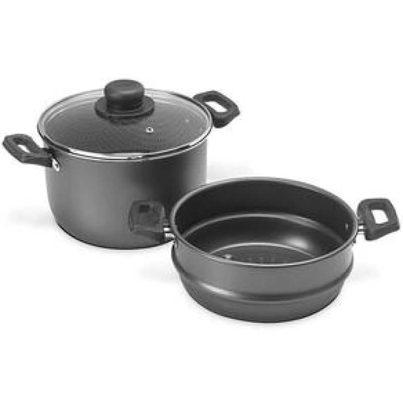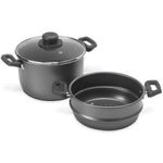 Casa e DecoraçãoUtilidades DomésticasAcessórios de CozinhaCozi Vapor/ Cuscuzeira Multiflon em Alumínio com Revestimento Antiaderente 7 Camadas, Tampa de Vidro Temperado e Alças em Baquelite 20 cm - Grafite