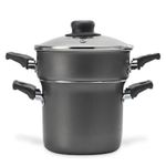 Casa e DecoraçãoUtilidades DomésticasJogo de PanelasCozi Vapor Cuscuzeira Multiflon Antiaderente de Alumínio e Tampa de Vidro 14cm - Preta