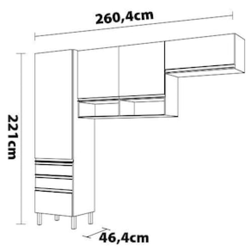 Cozinha Compacta Bartira Jaspe com 4 Portas, 3 Gavetas e 5 Prateleiras - 260,4cm de largura - Freixo/Grafite REF: 195527_Sicredi