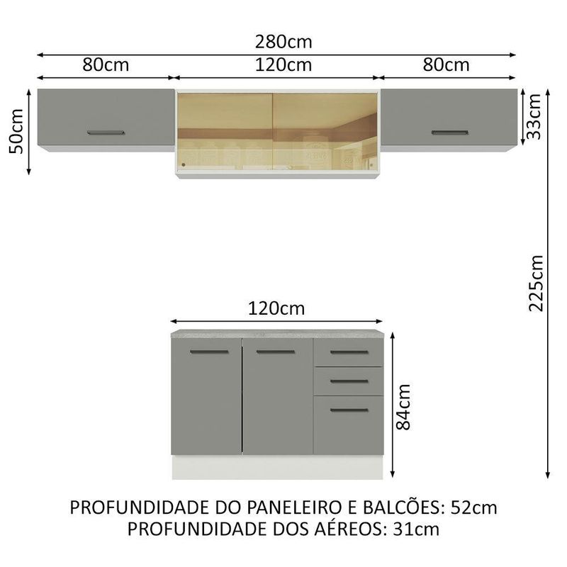 Cozinha Compacta Madesa Agata 280004 com Armário e Balcão (Com Tampo) - Branco/Cinza REF: 513591_Sicredi