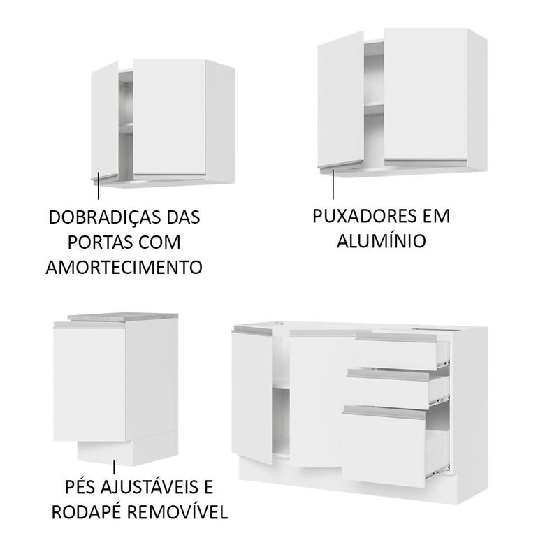 Casa e DecoraçãoMóveisCozinhasCozinha Compacta Madesa Glamy 160001 com Armário e Balcão (Sem Tampo e Pia) - Branco