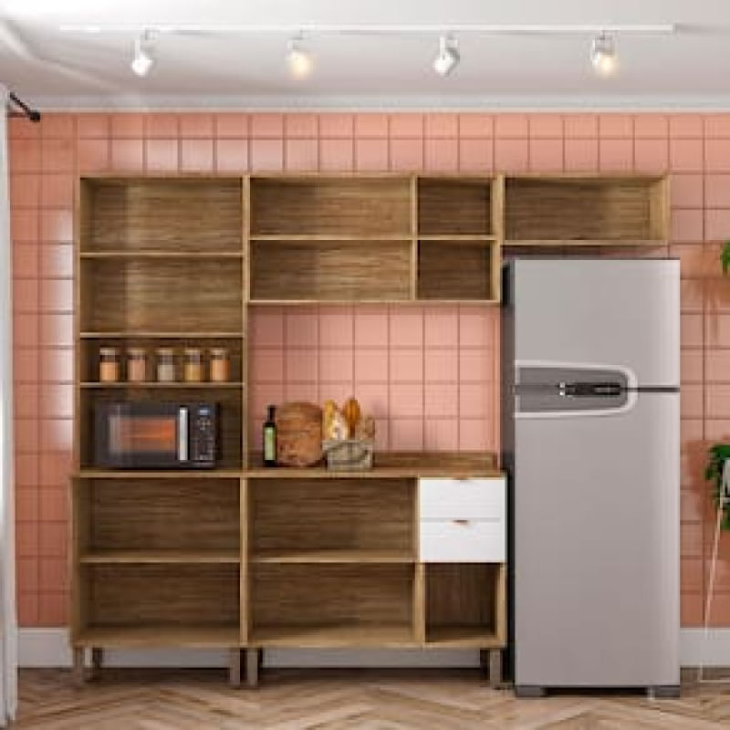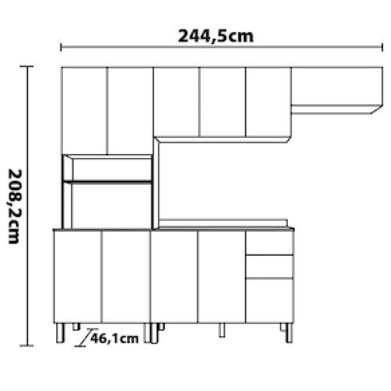 Cozinha Completa Bartira Joy com 11 Portas, 2 Gavetas, 5 Prateleiras e Nicho para Micro-ondas - 244,5cm de largura REF: 271068_Sicredi