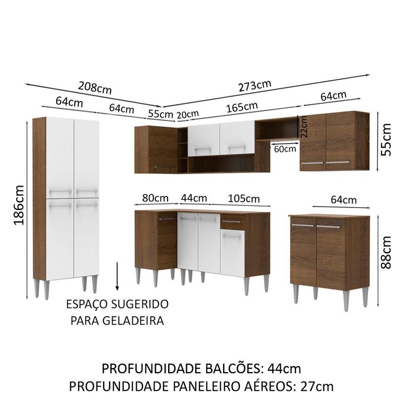 Cozinha Completa de Canto Madesa Emilly Moon com Armário e Balcão 15 Portas 1 Gaveta - Rustic/Branco REF: 510962_Sicredi