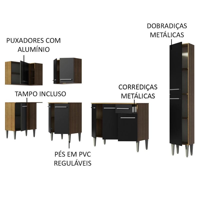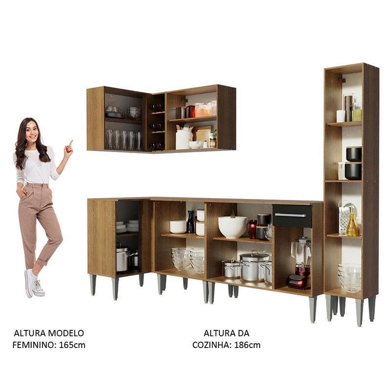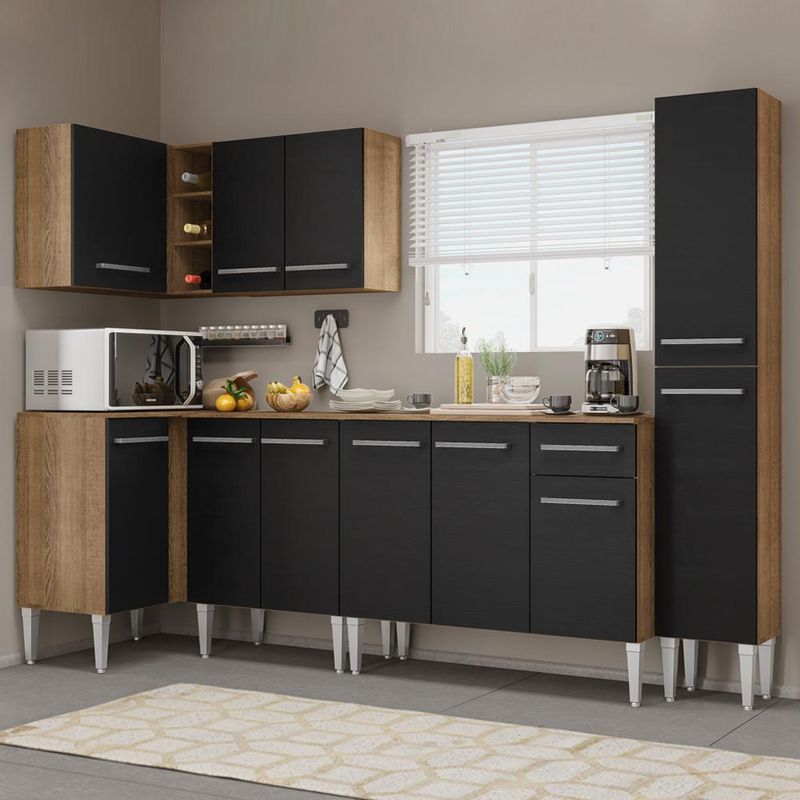 Casa e DecoraçãoMóveisCozinhasCozinha Completa de Canto Madesa Emilly Water com Armário, Balcão e Paneleiro - Rustic/Preto