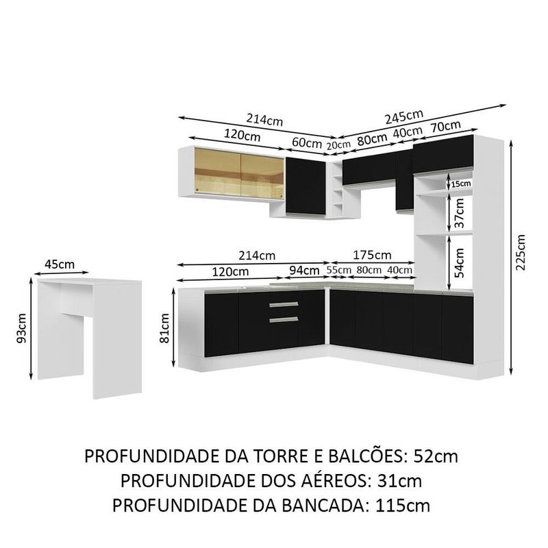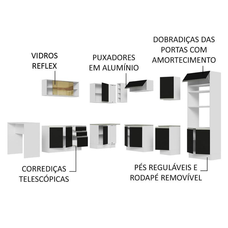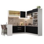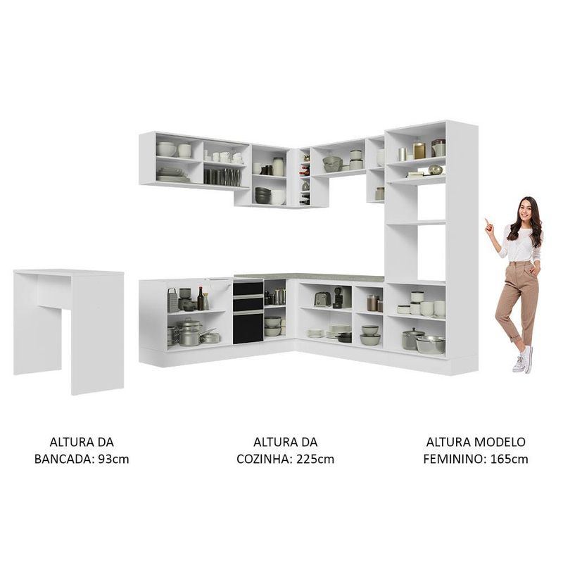 Cozinha Completa de Canto Madesa Glamy 504001 com Armário e Bancada (S/ Tampo e Pia) - Branco/Preto REF: 513895_Sicredi