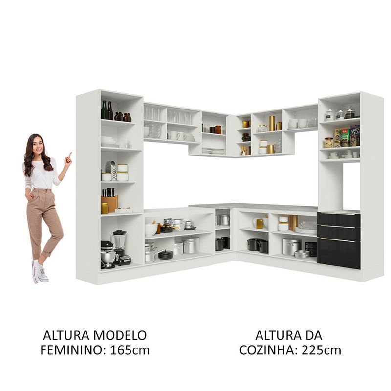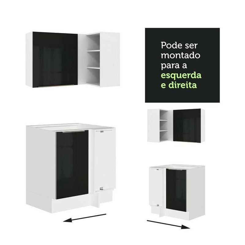 Cozinha Completa de Canto Madesa Lux 546003 com Armário e Balcão - Branco/Preto REF: 513921_Sicredi