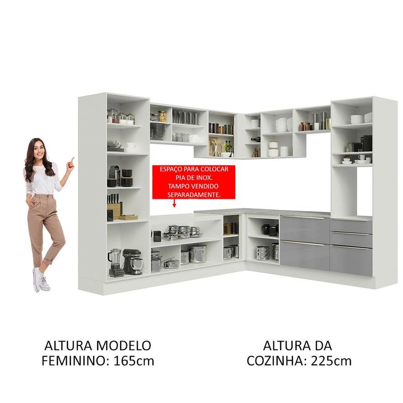 Cozinha Completa de Canto Madesa Lux com Armário e Balcão - Branco/Cinza REF: 513913_Sicredi