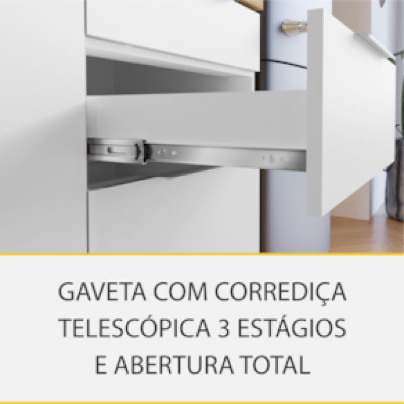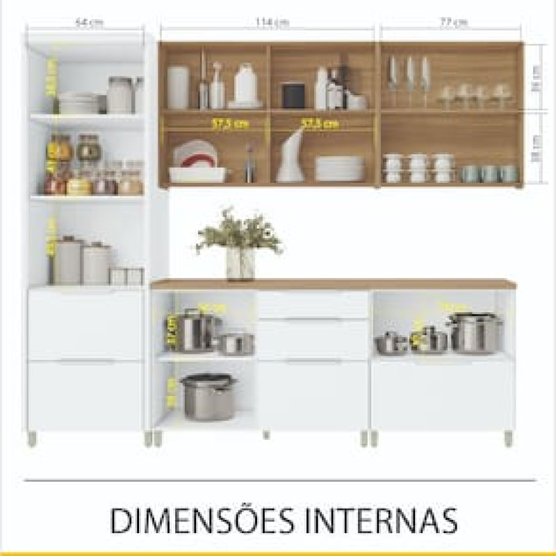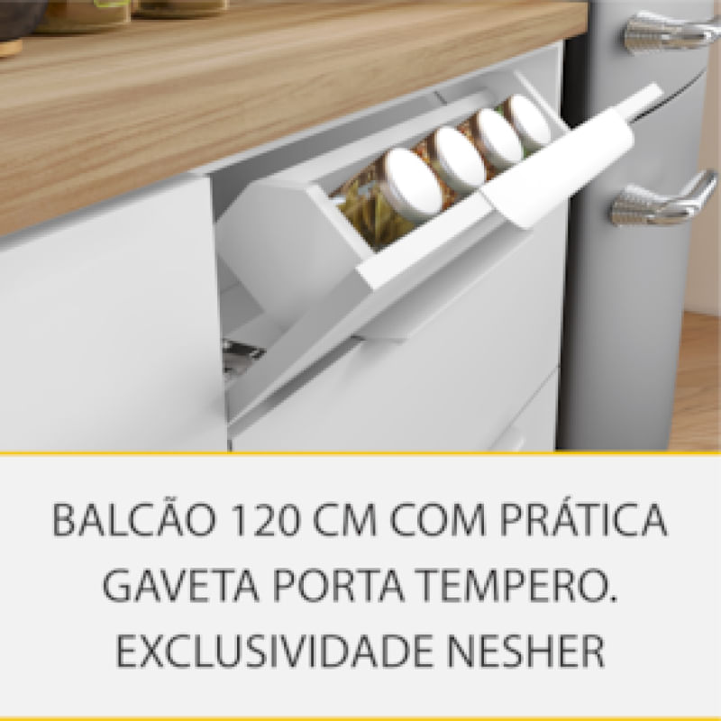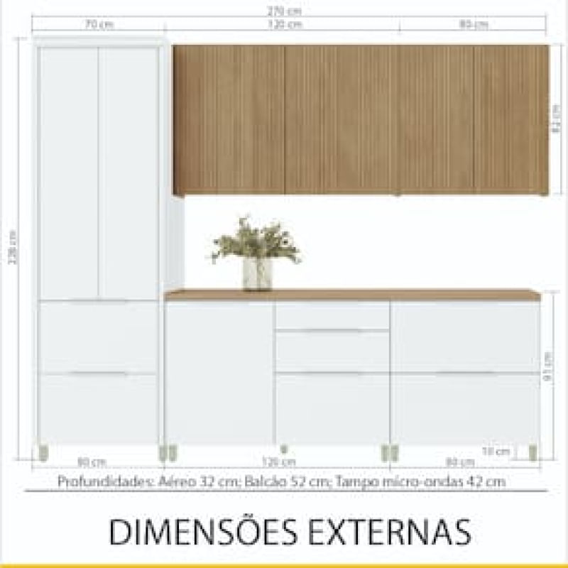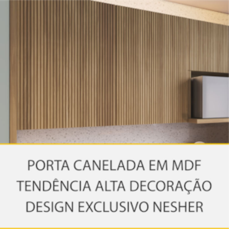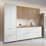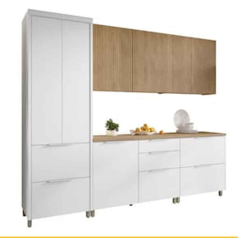 Cozinha Completa em MDF Nesher Paris Ripada com 270 cm de Largura, 8 Portas, 6 Gavetas e 12 Prateleiras - Branco/Nature REF: 298246_Sicredi