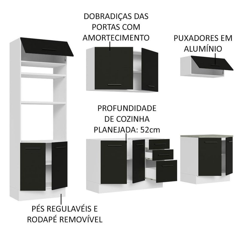 Cozinha Completa Madesa Agata 270001 com Armário e Balcão (Sem Tampo e Pia) - Branco/Preto REF: 514013_Sicredi