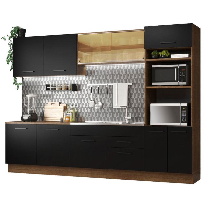 Cozinha Completa Madesa Agata 310001 com Armário e Balcão (Sem Tampo e Pia) - Rustic/Preto REF: 514076_Sicredi