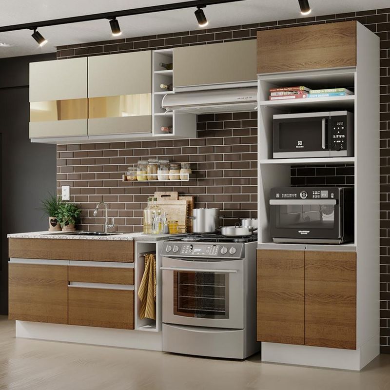 Casa e DecoraçãoMóveisCozinhasCozinha Completa Madesa Cristal com Armário e Balcão (Sem Tampo e Pia) - Branco/Rustic/Crema