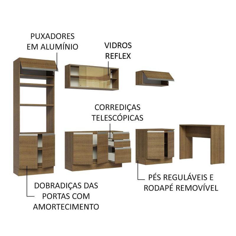 Casa e DecoraçãoMóveisCozinhasCozinha Completa Madesa Glamy 315001 com Armário, Balcão e Bancada (Sem Tampo e Pia) - Rustic