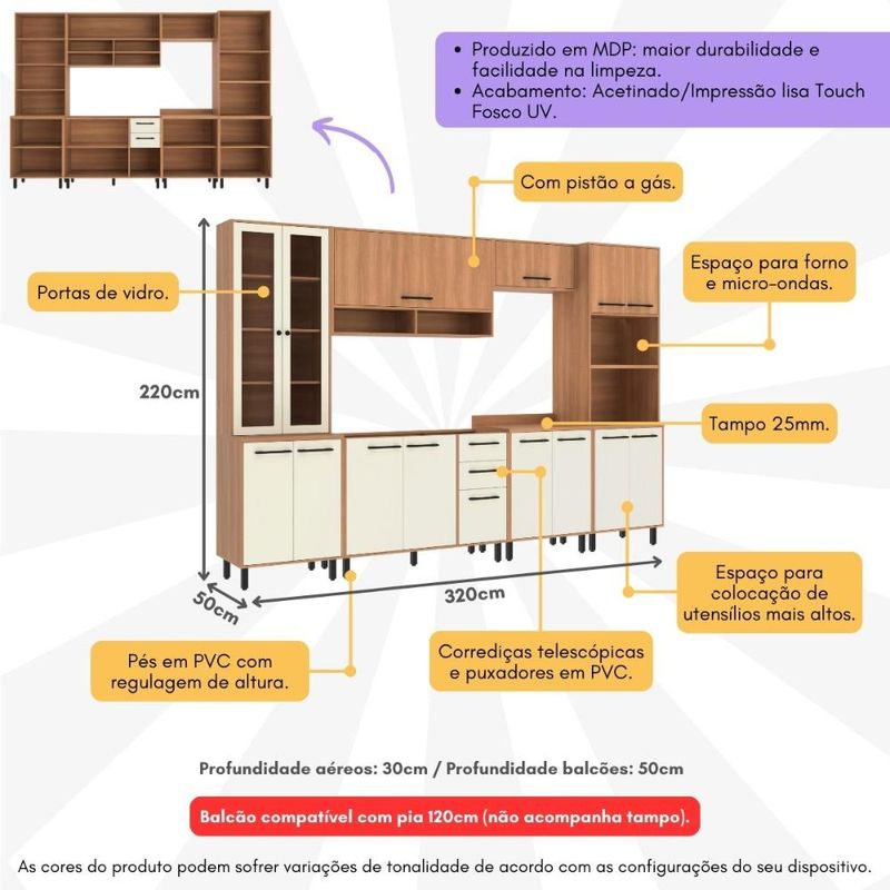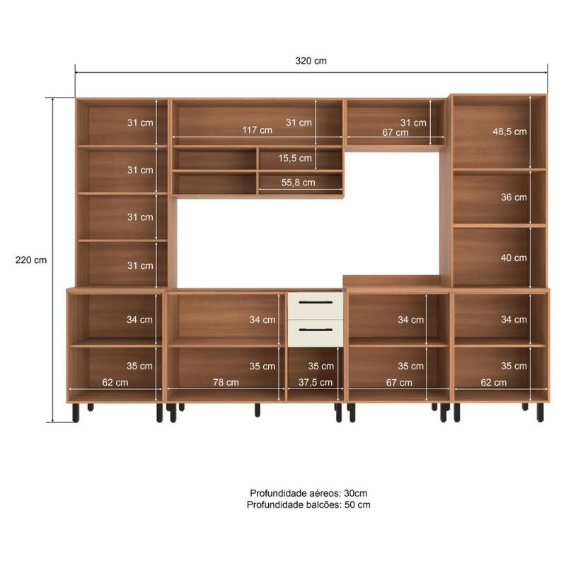 Cozinha Completa Modulada 6 Peças com Gabinete para Pia Havana Multimóveis CR20319 REF: 767750_Sicredi