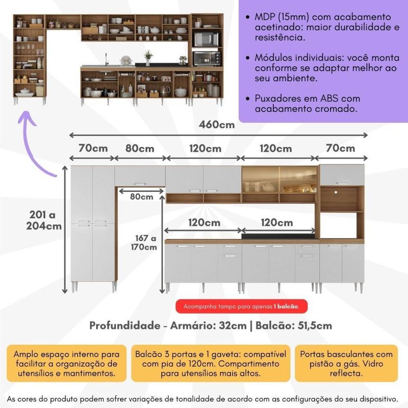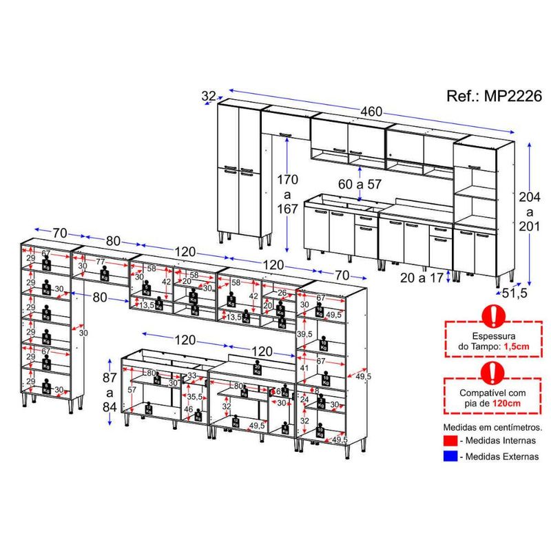Cozinha Completa Modulada 7 Pçs com Armário e Balcão de Pia Paris Multimóveis MP2226 REF: 578790_Sicredi
