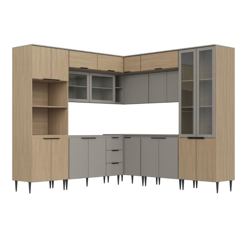 Cozinha Lavinia 11 Peças Com Cristaleira Aéreo De Vidro E Canto Imperial Fume J Carvalho REF: 7898737191985