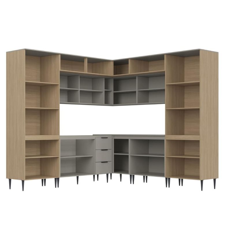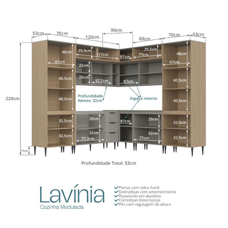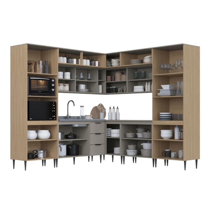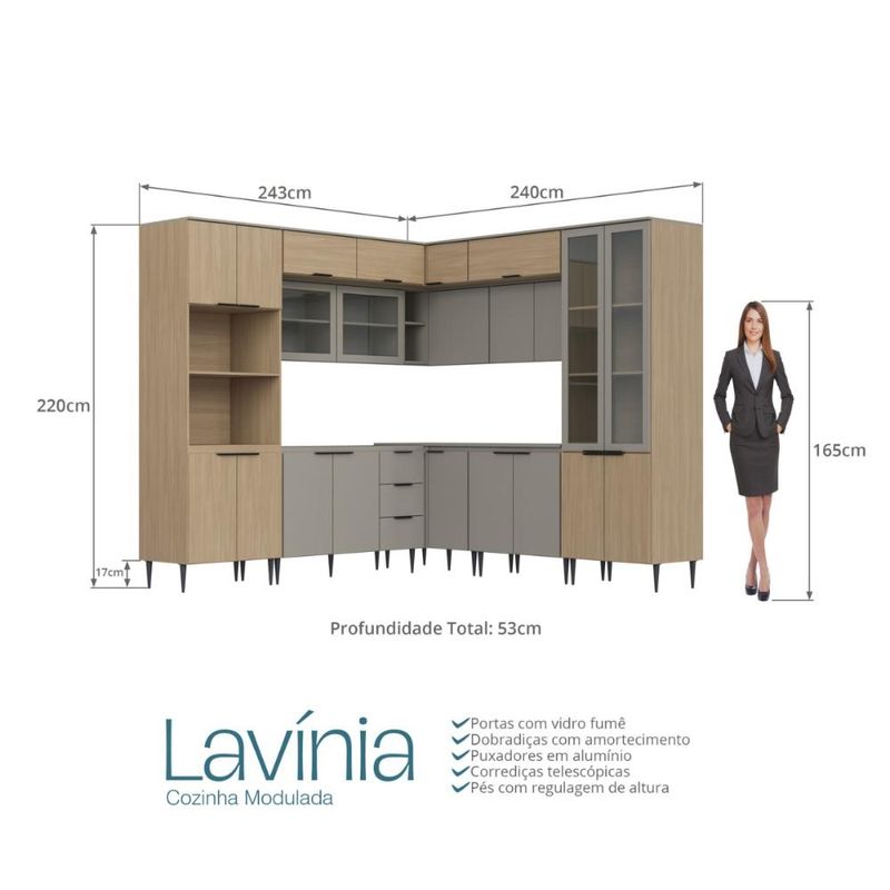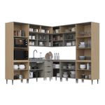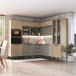 Casa e DecoraçãoMóveisCozinhasCozinha Lavinia 11 Peças Com Cristaleira Aéreo De Vidro E Canto Imperial Fume J Carvalho