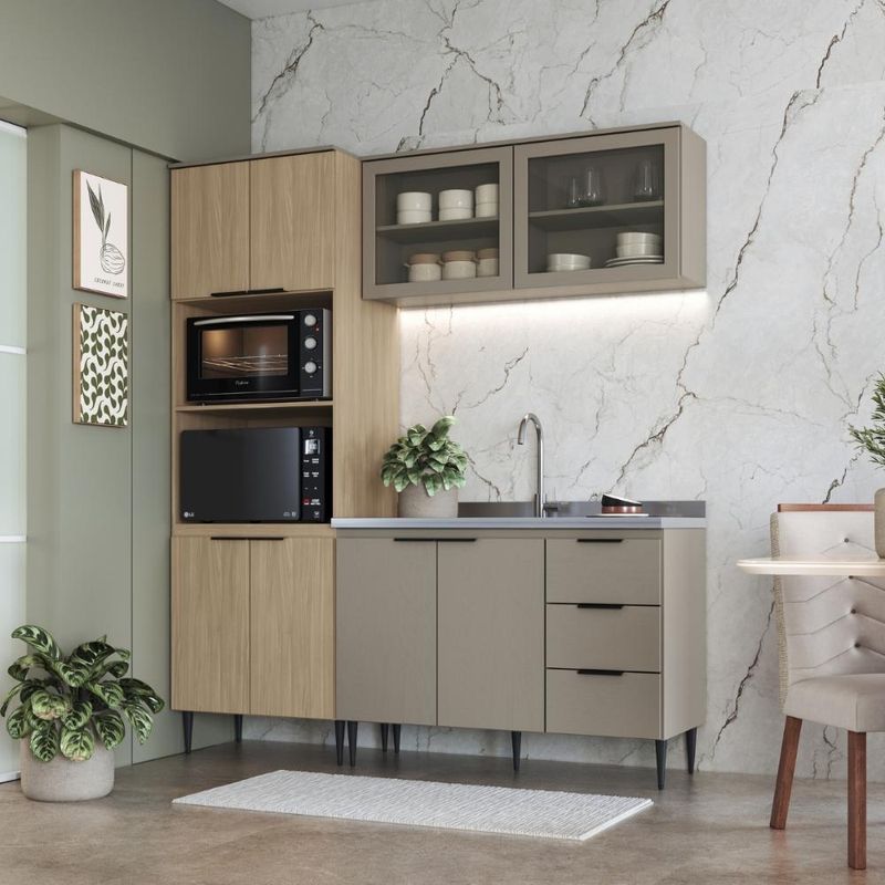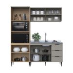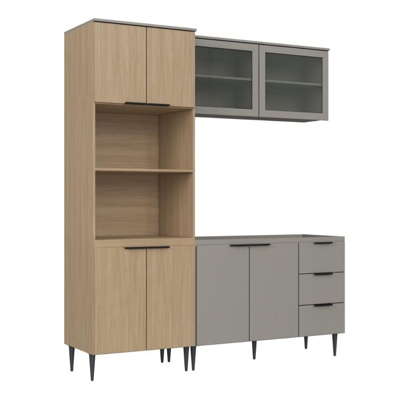 Casa e DecoraçãoMóveisCozinhasCozinha Lavinia 3 Peças Com Aéreo De Vidro Imperial Fume J Carvalho