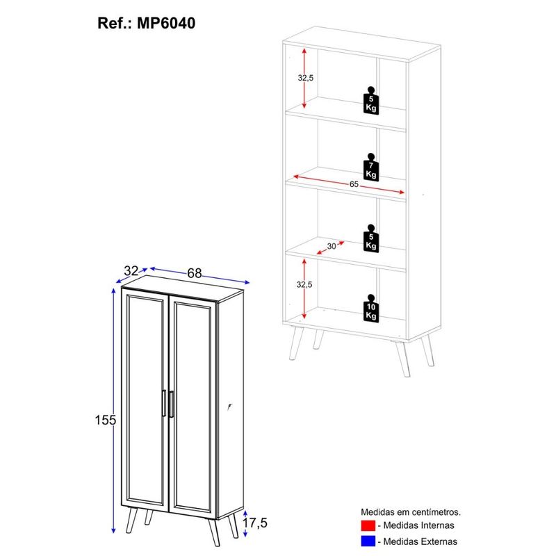 Cristaleira com 2 Portas de Vidro Retrô 68cm Urban Multimóveis MP6040 REF: 7899390847509