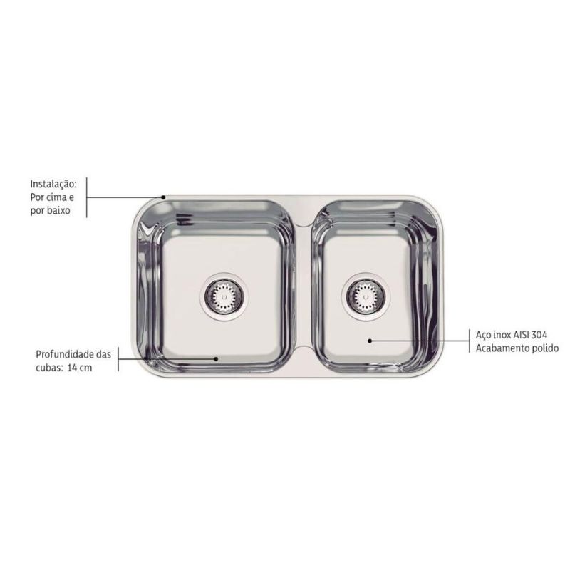 Cuba Dupla Tramontina Isis Aço Inox Polido 69x40cm Sobrepor Embutir Pia Cozinha REF: 7894693033246