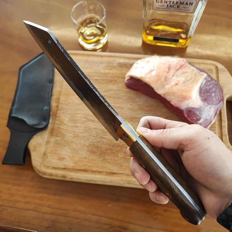 Cutelo Artesanal 8' Churrasco Cabo de Madeira Carne Cozinha Brut Forge Aço Carbono 1070 REF: 7898151206661