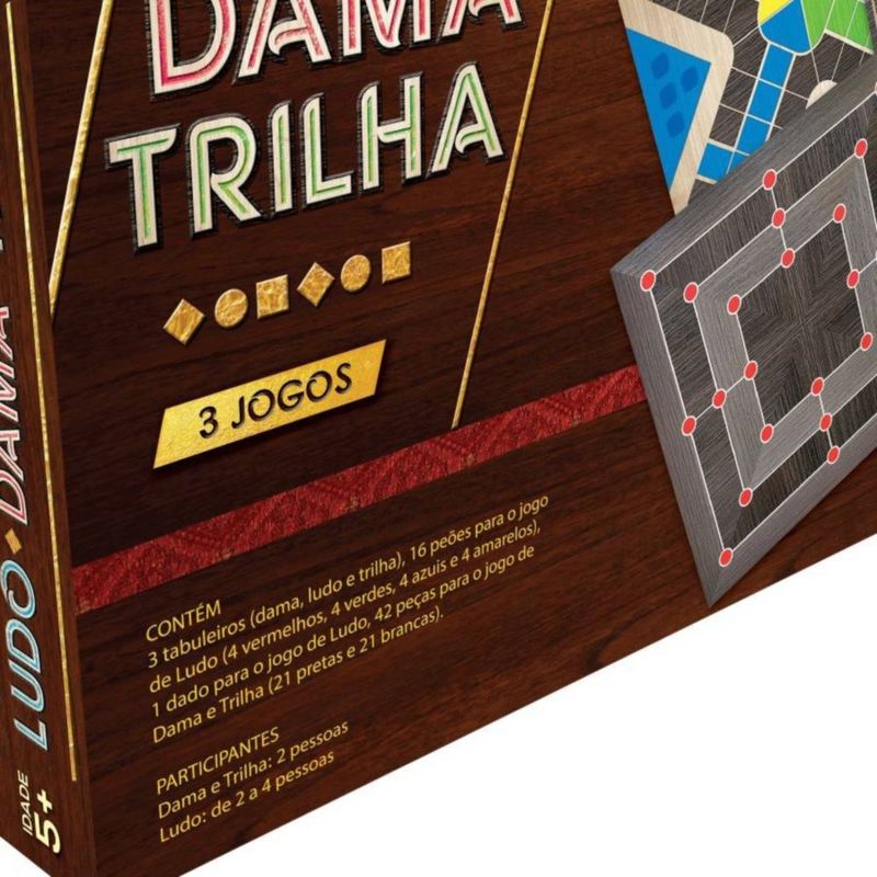 Brinquedos e JogosJogos e AcessóriosDama, Ludo e Trilha 3 Jogos - Pais e Filhos