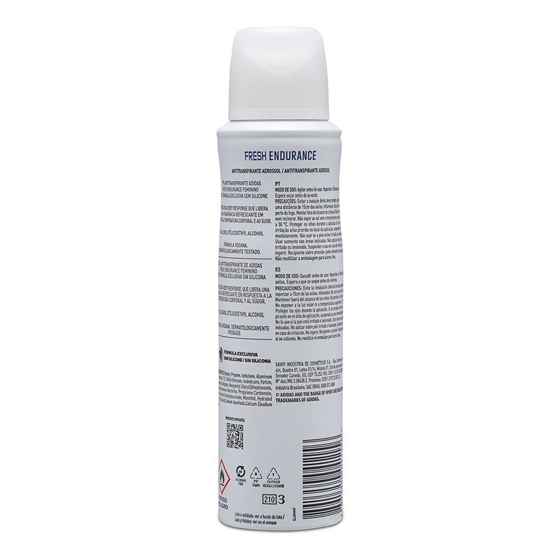 Desodorante Adidas Aerossol Feminino Antitranspirante Fresh Endurance 150ml REF: 582546_Sicredi