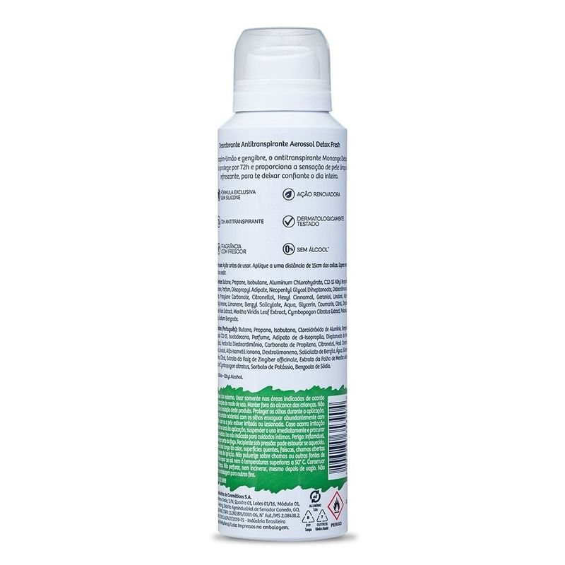Desodorante Aerossol Monange Detox Fresh Capim Limao E Gengibre 90g REF: 388616_Sicredi