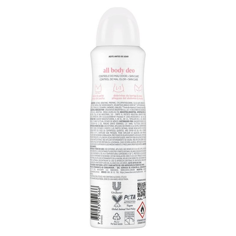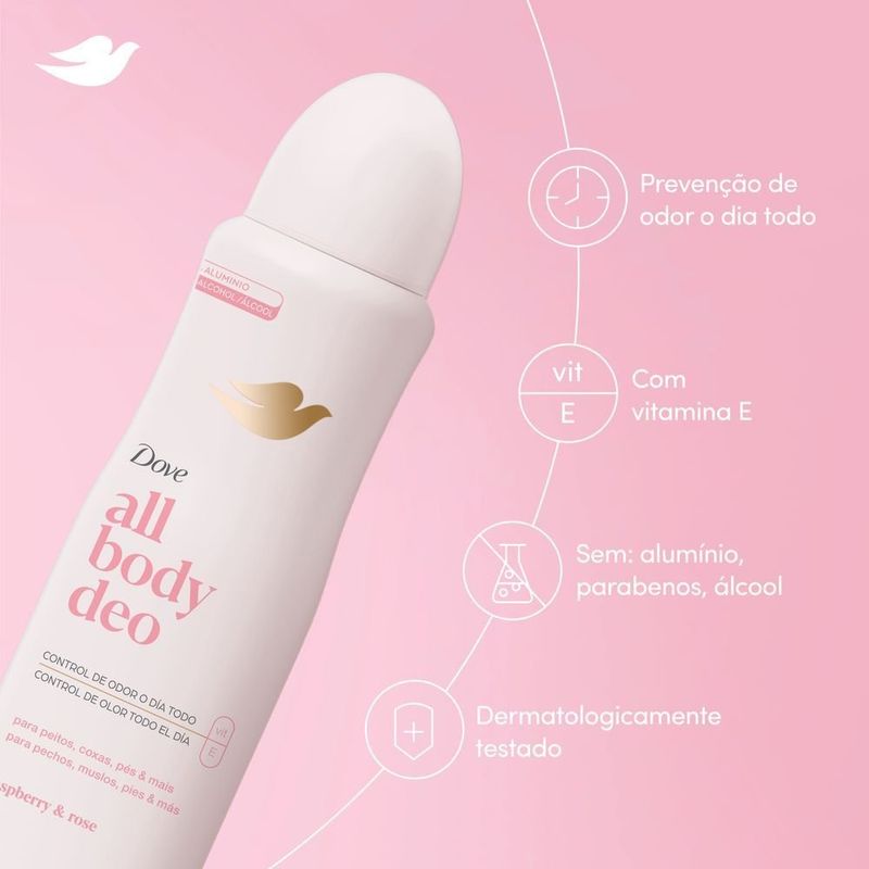 Desodorante Corporal Aerosol Dove All Over Body Raspberry & Rose 150ml REF: 7791293051666