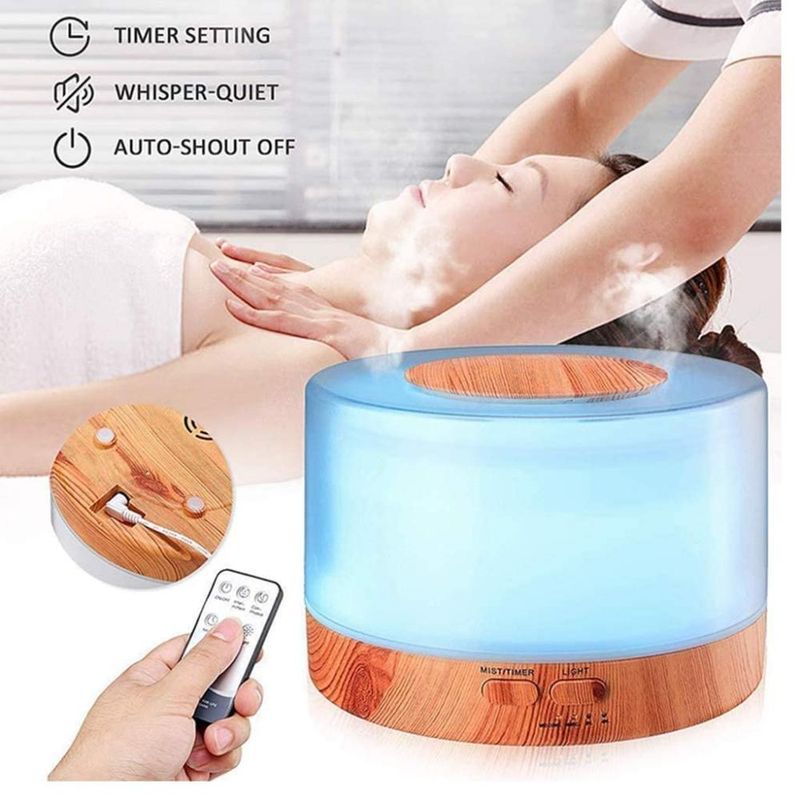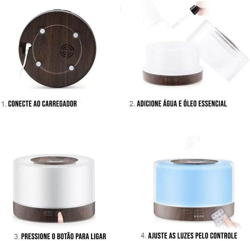 Beleza e SaúdeSaúdeUmidificadorDifusor Aromatizador 500ml Com Controle Remoto Led 7 Cores Luminária Aromaterapia
